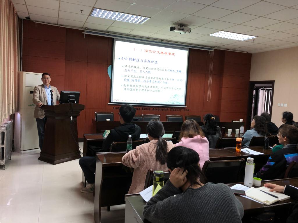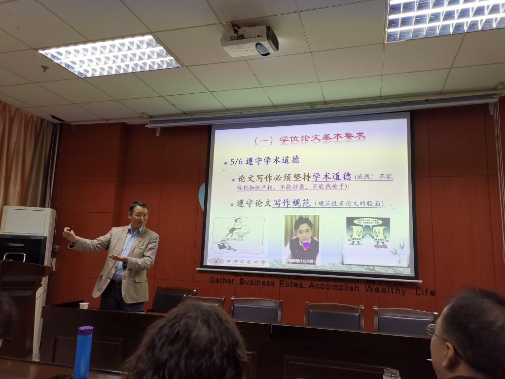 张俊瑞教授对MPAcc院校的发展情况进行了介绍,阐述了教指委对MPAcc专业研究生的培养要求。张教授强调了会写论文和写好论文的重要性,重点从MPAcc专业学位论文基本要求、MPAcc专业学位论文质量控制及MPAcc专业学位论文评价三个方面进行了讲解,并且从如何选题及论文选题中的常见问题进行了分析。张教授重点强调了“问题导向”的含义,建议导师与学生要加强沟通,从学位论文选题、学位论文类型选择入手进行学位论文写作,并且建议同学们引用高质量、高水平的期刊。张教授通过结合西安交通大学MPAcc专业未通过论文情况对学位论文质量控制措施进行了详细说明,并且展示了全国优秀MPAcc专业学位论文的范例,指出了MPAcc质量认证中论文评估的要点和注意事项。最后,张教授向在场师生推荐了关于论文研究及撰写的书籍,并附上了对同学们的殷切期待:期待同学们在不久的将来,获得优秀论文。