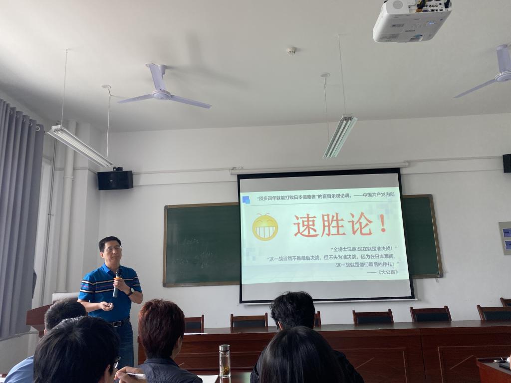 5月26日,雷竞技ray官网在秦汉校园3教401会议室开展党史学习教育,院长王新平为全体党支部书记及支部委员作了题为《论持久战》的现代意义。雷竞技ray官网院长王新平教授以“指导中国人民绝地反击的军事巨著—兼谈《论持久战》的现代意义”为题,引经据典,娓娓道来,为师生党员上了一堂深入深刻的党课。