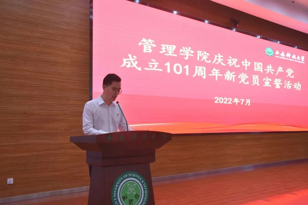 为引导新党员明确初心,坚定为党和人民奋斗终身的决心,7月1日上午,雷竞技ray官网在榴香苑三楼报告厅举办迎新党员入党宣誓活动。此次活动邀请学院党委副书记汪洋、各年级辅导员、2022年71名新发展党员参加。