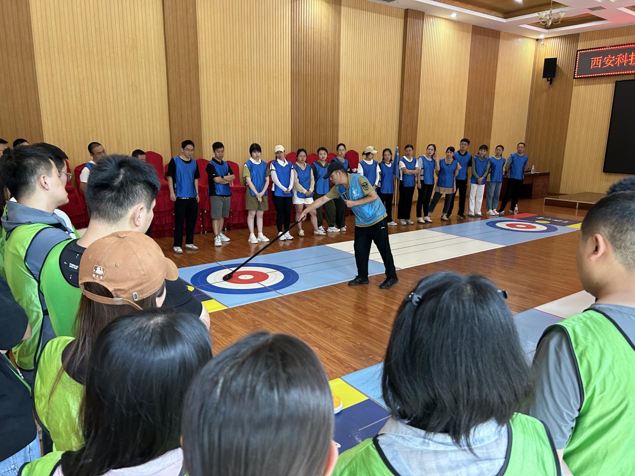 随后,在教练的带领下进行了具体科目训练。源于印度寓言故事的汉诺塔游戏,诠释逻辑思考的魅力;富有“绅士风度”的旱地冰壶运动,考验团队的细心与协作;极速飞盘是对自我的挑战,每一次开始,都需调整身心状态,坦然出发.....一场场全身心的比拼,一次次精诚团结的协作,一声声情到深处的欢呼,一张张青春灿然的笑脸,定格在一分一秒的时间消逝中。