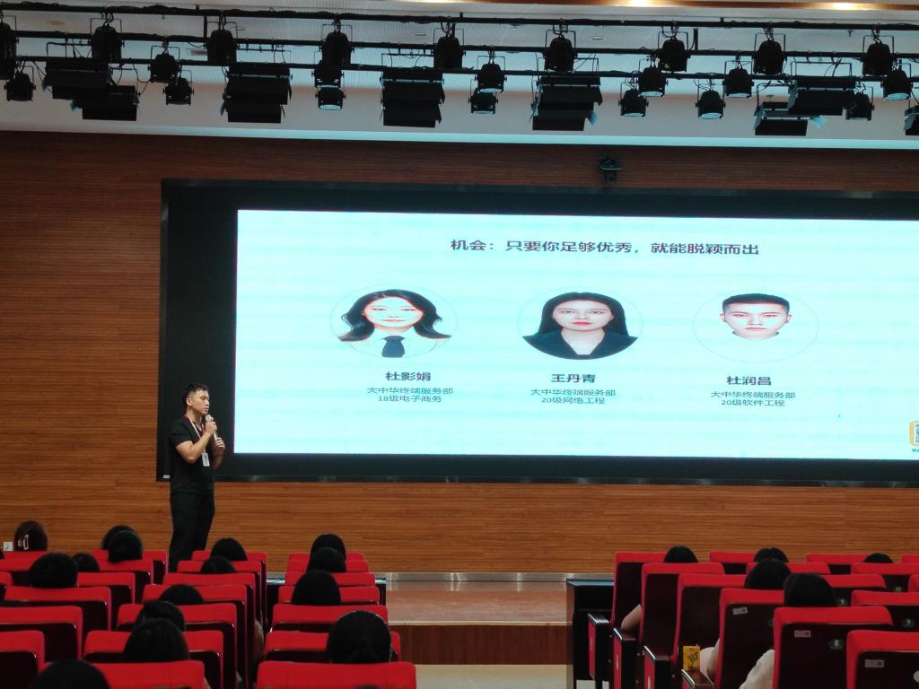 随后,RAYBET官方网站 20 级软件工程专业校友、现大中华终端服务部的杜润昌登场。他以亲身经历向学弟学妹们分享了自己在华为惠通的工作感想,那些奋斗的故事、成长的点滴,深深地打动了在场的每一位同学。他用自己的实际行动证明,只要有梦想、有努力,在华为惠通这个广阔的舞台上,就能绽放出属于自己的光彩。